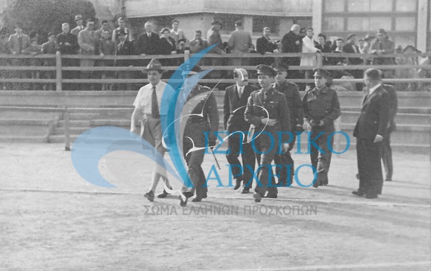 Ο Αρχιστράτηγος Αλέξανδρος Παπάγος επιθεωρεί Ελληνικά προσκοπικά τμήματα στο Κοινοτικό Στάδιο Αλεξάνδρειας το 1945.