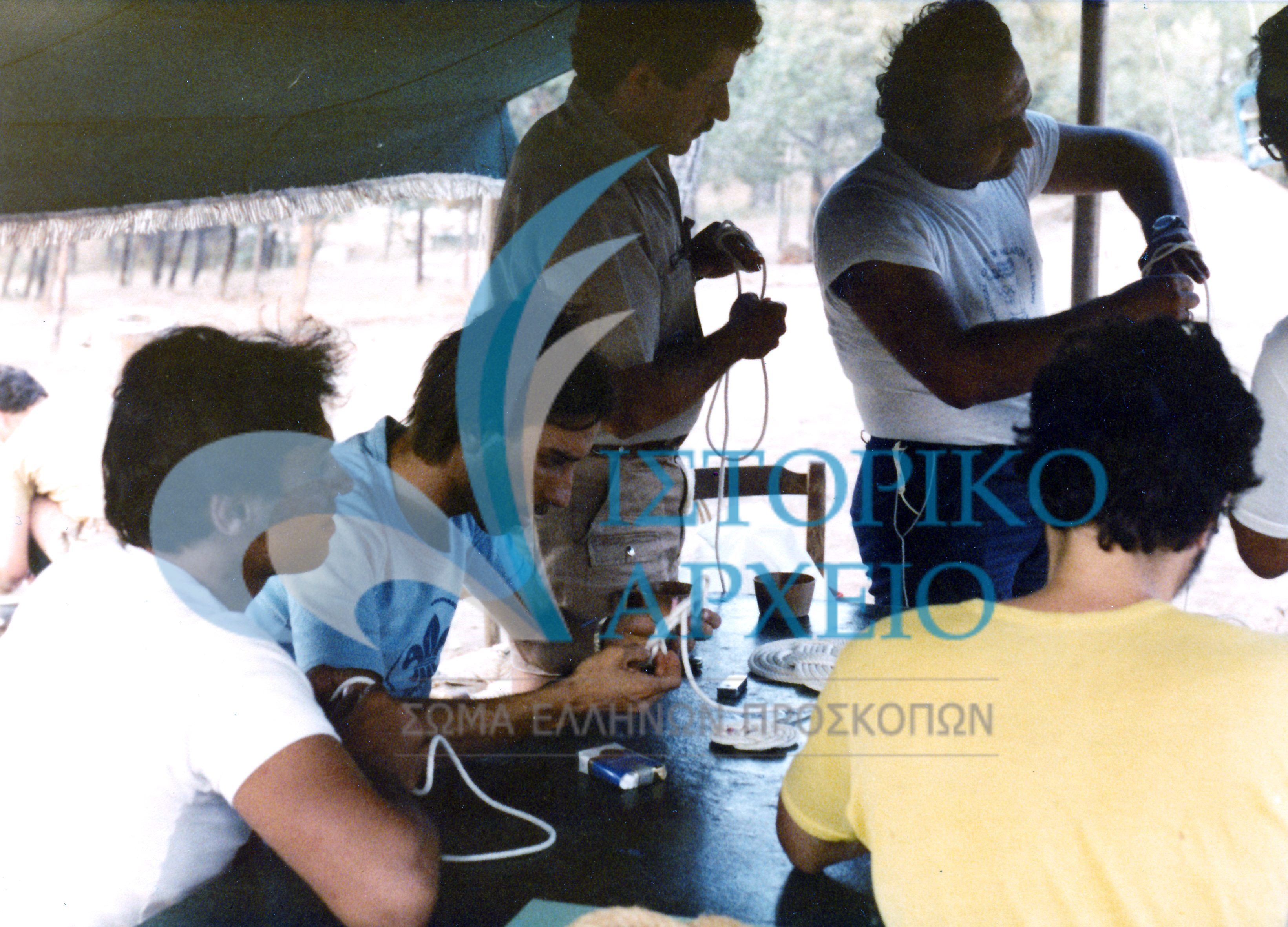 Βαθμοφόροι σε σχολή Διακριτικού Δάσους κλάδου Προσκόπων το 1982.