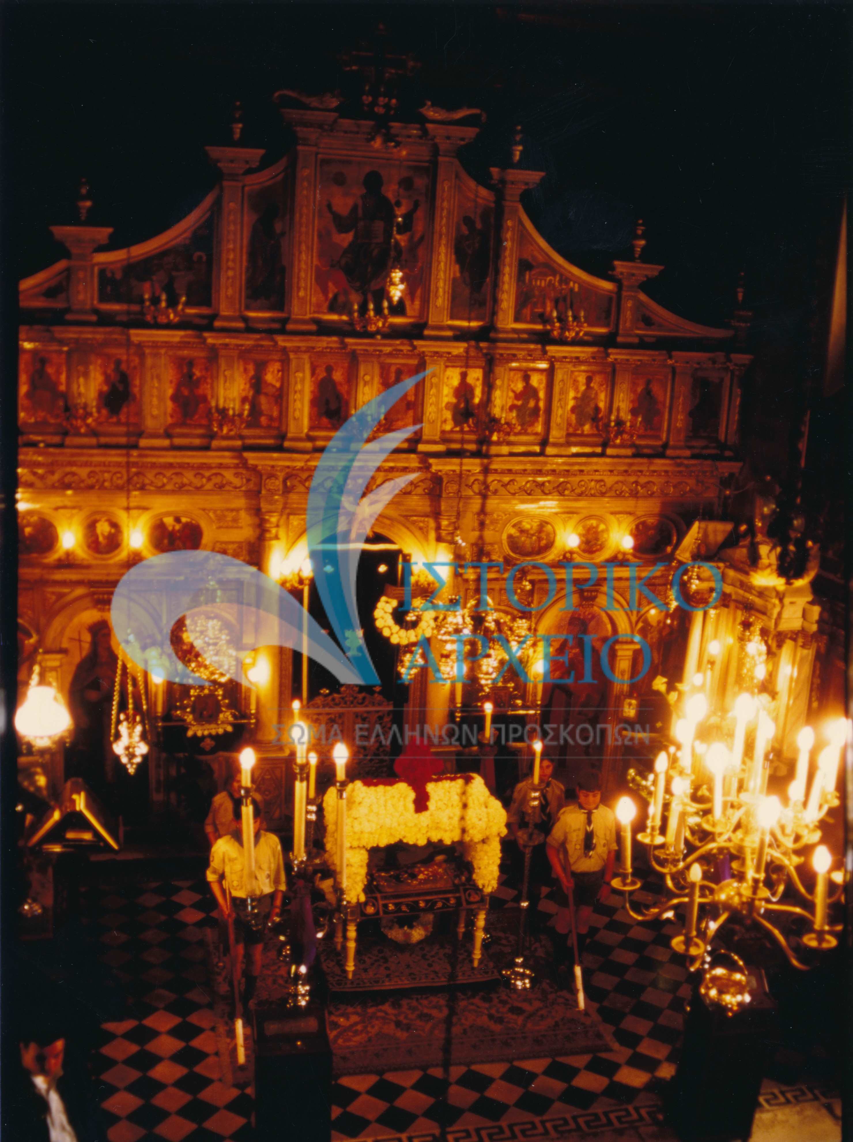 Πρόσκοποι στέκουν τιμητικά δίπλα στον Επιτάφιο την Μεγάλη Παρασκευή στην Κέρκυρα το 1996.