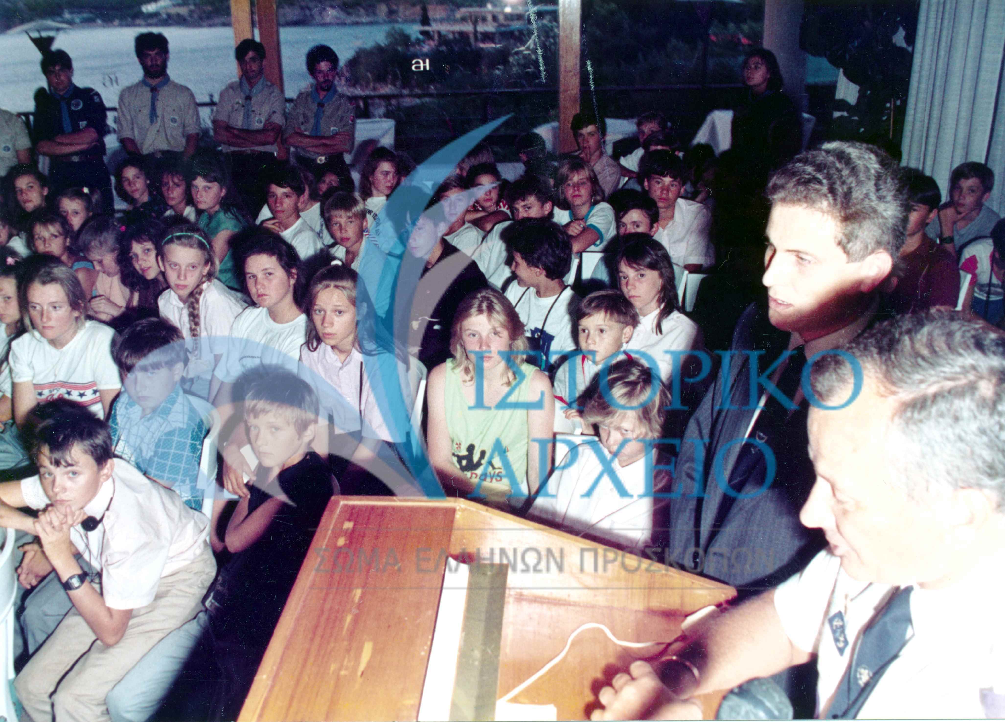Στιγμιότυπο από την υποδοχή των παιδιών από το Τσερνόμπιλ της Ουκρανίας που φιλοξενήθηκαν από το ΣΕΠ στο Σούνιο το 1990.