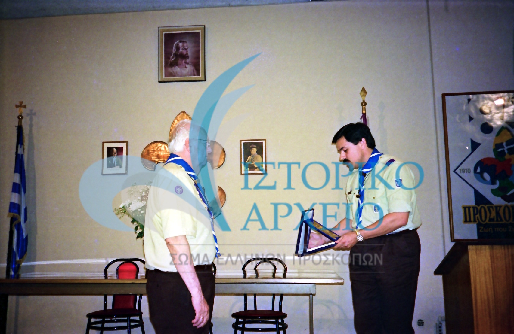 Ο ΓΕ Χρ. Λυγερός σε απονομή τιμητικής διάκρισης στον Αλ. Κομνηνό (Αλέκτωρ) το 1995.